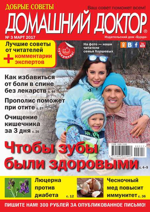 «Добрые советы. Домашний доктор» — это народный журнал о здоровье, уникальный и непохожий на другие издания медицинской тематики. А все потому, что основу журнала составляют письма читателей. В них авторы рассказывают свои истории исцеления, делятся рецептами народной медицины, проверенными на собственном опыте, просто обращаются друг к другу за помощью или дают советы тем, кто не может самостоятельно справиться со своим недугом.