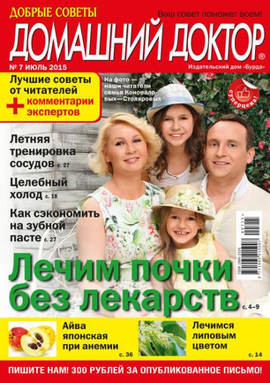«Добрые советы. Домашний доктор» — это народный журнал о здоровье, уникальный и непохожий на другие издания медицинской тематики. А все потому, что основу журнала составляют письма читателей. В них авторы рассказывают свои истории исцеления, делятся рецептами народной медицины, проверенными на собственном опыте, просто обращаются друг к другу за помощью или дают советы тем, кто не может самостоятельно справиться со своим недугом.