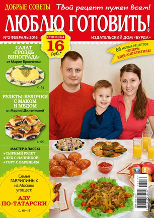 «Добрые советы. Люблю готовить!» — журнал о вкусной еде, не похожий на другие кулинарные издания. Все опубликованные в нем рецепты присланы в редакцию самими читателями. Каждый рецепт прошел конкурсный отбор, а его автор получил денежный приз. Ежемесячно на страницах журнала — более 100 коронных блюд, которые многократно проверены опытными хозяйками и которые можно смело брать в свою коллекцию рецептов тем, кто любит баловать родных и удивлять гостей.