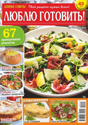 «Добрые советы. Люблю готовить!» — журнал о вкусной еде, не похожий на другие кулинарные издания. Все опубликованные в нем рецепты присланы в редакцию самими читателями. Каждый рецепт прошел конкурсный отбор, а его автор получил денежный приз. Ежемесячно на страницах журнала — более 100 коронных блюд, которые многократно проверены опытными хозяйками и которые можно смело брать в свою коллекцию рецептов тем, кто любит баловать родных и удивлять гостей.