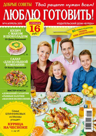 «Добрые советы. Люблю готовить!» — журнал о вкусной еде, не похожий на другие кулинарные издания. Все опубликованные в нем рецепты присланы в редакцию самими читателями. Каждый рецепт прошел конкурсный отбор, а его автор получил денежный приз. Ежемесячно на страницах журнала — более 100 коронных блюд, которые многократно проверены опытными хозяйками и которые можно смело брать в свою коллекцию рецептов тем, кто любит баловать родных и удивлять гостей.