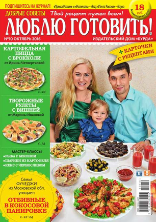 «Добрые советы. Люблю готовить!» — журнал о вкусной еде, не похожий на другие кулинарные издания. Все опубликованные в нем рецепты присланы в редакцию самими читателями. Каждый рецепт прошел конкурсный отбор, а его автор получил денежный приз. Ежемесячно на страницах журнала — более 100 коронных блюд, которые многократно проверены опытными хозяйками и которые можно смело брать в свою коллекцию рецептов тем, кто любит баловать родных и удивлять гостей.