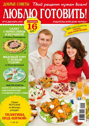 «Добрые советы. Люблю готовить!» — журнал о вкусной еде, не похожий на другие кулинарные издания. Все опубликованные в нем рецепты присланы в редакцию самими читателями. Каждый рецепт прошел конкурсный отбор, а его автор получил денежный приз. Ежемесячно на страницах журнала — более 100 коронных блюд, которые многократно проверены опытными хозяйками и которые можно смело брать в свою коллекцию рецептов тем, кто любит баловать родных и удивлять гостей.