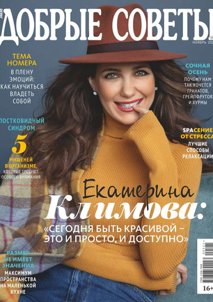 «Добрые советы» — это ежемесячный журнал для женщин. Его главные темы — секреты привлекательности, хорошего самочувствия, домашнего уюта и гармонии в отношениях с близкими. Каждый номер журнала открывает интервью со звездой — о ее личной жизни, профессиональных успехах, о доме, семье и детях. Журнал «Добрые советы» рассказывает обо всем, что интересует современную женщину. Стильные идеи и модные акценты. Новинки косметики. Меню здоровья и рецепты красоты. Дети и родители. Кошелек и карьера.