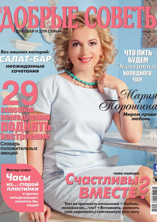 «Добрые советы» — это ежемесячный журнал для женщин. Его главные темы — секреты привлекательности, хорошего самочувствия, домашнего уюта и гармонии в отношениях с близкими. Каждый номер журнала открывает интервью со звездой — о ее личной жизни, профессиональных успехах, о доме, семье и детях. Журнал «Добрые советы» рассказывает обо всем, что интересует современную женщину. Стильные идеи и модные акценты. Новинки косметики. Меню здоровья и рецепты красоты. Дети и родители. Кошелек и карьера.