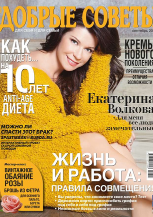 «Добрые советы» — это ежемесячный журнал для женщин. Его главные темы — секреты привлекательности, хорошего самочувствия, домашнего уюта и гармонии в отношениях с близкими. Каждый номер журнала открывает интервью со звездой — о ее личной жизни, профессиональных успехах, о доме, семье и детях. Журнал «Добрые советы» рассказывает обо всем, что интересует современную женщину. Стильные идеи и модные акценты. Новинки косметики. Меню здоровья и рецепты красоты. Дети и родители. Кошелек и карьера.