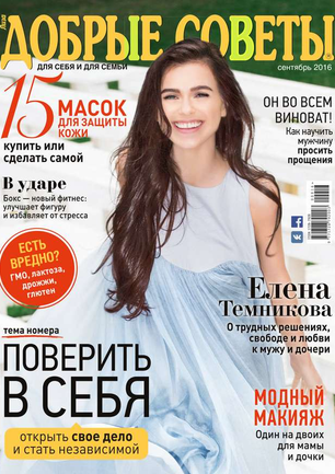«Добрые советы» — это ежемесячный журнал для женщин. Его главные темы — секреты привлекательности, хорошего самочувствия, домашнего уюта и гармонии в отношениях с близкими. Каждый номер журнала открывает интервью со звездой — о ее личной жизни, профессиональных успехах, о доме, семье и детях. Журнал «Добрые советы» рассказывает обо всем, что интересует современную женщину. Стильные идеи и модные акценты. Новинки косметики. Меню здоровья и рецепты красоты. Дети и родители. Кошелек и карьера.