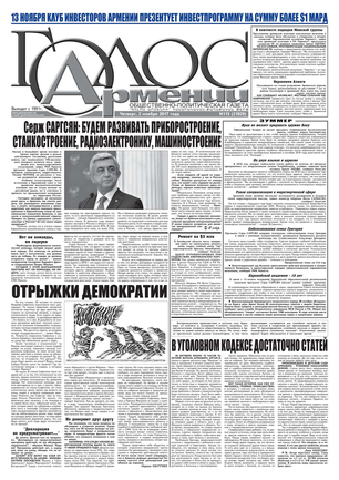 Общественно-политическое издание "Голос Армении"  выходит с мая 1991 года и является наиболее популярной, авторитетной и цитируемой русскоязычной газетой страны. Спектр затрагиваемых проблем - самый широкий: от политики и экономики до культуры и социальных сетей, а авторы "Голоса Армении" по праву составляют золотой фонд современной армянской журналистики.