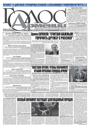 Общественно-политическое издание "Голос Армении"  выходит с мая 1991 года и является наиболее популярной, авторитетной и цитируемой русскоязычной газетой страны. Спектр затрагиваемых проблем - самый широкий: от политики и экономики до культуры и социальных сетей, а авторы "Голоса Армении" по праву составляют золотой фонд современной армянской журналистики.