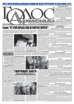 Общественно-политическое издание "Голос Армении"  выходит с мая 1991 года и является наиболее популярной, авторитетной и цитируемой русскоязычной газетой страны. Спектр затрагиваемых проблем - самый широкий: от политики и экономики до культуры и социальных сетей, а авторы "Голоса Армении" по праву составляют золотой фонд современной армянской журналистики.