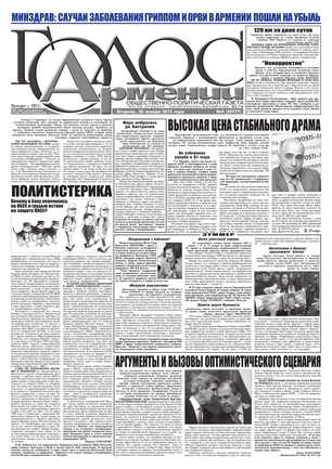 Общественно-политическое издание "Голос Армении"  выходит с мая 1991 года и является наиболее популярной, авторитетной и цитируемой русскоязычной газетой страны. Спектр затрагиваемых проблем - самый широкий: от политики и экономики до культуры и социальных сетей, а авторы "Голоса Армении" по праву составляют золотой фонд современной армянской журналистики.