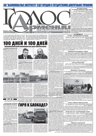 Общественно-политическое издание "Голос Армении"  выходит с мая 1991 года и является наиболее популярной, авторитетной и цитируемой русскоязычной газетой страны. Спектр затрагиваемых проблем - самый широкий: от политики и экономики до культуры и социальных сетей, а авторы "Голоса Армении" по праву составляют золотой фонд современной армянской журналистики.