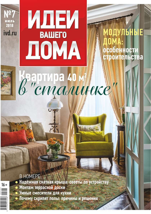Издание, посвященное обустройству интерьера и ремонту. На страницах журнала вы найдете идеи, оригинальные решения, проекты планировки и оформления интерьера вашего дома на любой, даже самый взыскательный вкус, тесты и обзоры материалов для строительства и ремонта, статьи о том, как подобрать мебель, бытовую технику и иное оборудование так, чтобы все детали вписались в обстановку вашего дома. Кроме того, в рубриках «Дизайн от А до Я» и «Ландшафт», читатель найдет цикл статей, которые познакомят его не только с приемами оформления жилища, но и расскажут об истории дизайна, опытные специалисты дадут полезные советы и вооружат вас идеями, которые помогут облагородить территорию перед дачей или загородным домом.
