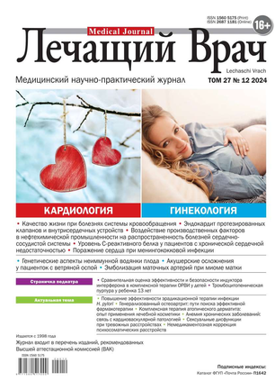 Научно-практический медицинский журнал, рекомендован Высшей Аттестационной Комиссией (ВАК).