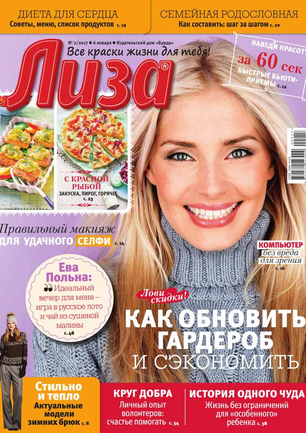 Самый популярный в России еженедельный журнал для молодых женщин «Лиза» стал еще интереснее, еще привлекательнее для читательниц. Теперь больше знаменитостей на страницах любимого журнала! Фитнес со звездой и звездный макияж, уроки стиля и самые горячие новости из жизни кумиров. А еще — модный шопинг, актуальная мода, новинки косметики и великолепные идеи для дома. Романтические истории о настоящей любви и рассказы читательниц о разных жизненных ситуациях. Аспекты психологии, секреты успешных отношений с окружающими и искусство сохранения любви.