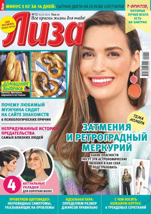 Самый популярный в России еженедельный журнал для молодых женщин «Лиза» стал еще интереснее, еще привлекательнее для читательниц. Теперь больше знаменитостей на страницах любимого журнала! Фитнес со звездой и звездный макияж, уроки стиля и самые горячие новости из жизни кумиров. А еще — модный шопинг, актуальная мода, новинки косметики и великолепные идеи для дома. Романтические истории о настоящей любви и рассказы читательниц о разных жизненных ситуациях. Аспекты психологии, секреты успешных отношений с окружающими и искусство сохранения любви.