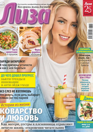 Самый популярный в России еженедельный журнал для молодых женщин «Лиза» стал еще интереснее, еще привлекательнее для читательниц. Теперь больше знаменитостей на страницах любимого журнала! Фитнес со звездой и звездный макияж, уроки стиля и самые горячие новости из жизни кумиров. А еще — модный шопинг, актуальная мода, новинки косметики и великолепные идеи для дома. Романтические истории о настоящей любви и рассказы читательниц о разных жизненных ситуациях. Аспекты психологии, секреты успешных отношений с окружающими и искусство сохранения любви.