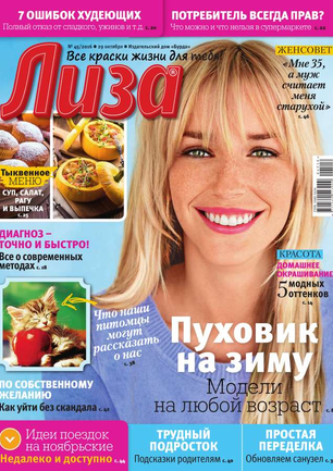 Самый популярный в России еженедельный журнал для молодых женщин «Лиза» стал еще интереснее, еще привлекательнее для читательниц. Теперь больше знаменитостей на страницах любимого журнала! Фитнес со звездой и звездный макияж, уроки стиля и самые горячие новости из жизни кумиров. А еще — модный шопинг, актуальная мода, новинки косметики и великолепные идеи для дома. Романтические истории о настоящей любви и рассказы читательниц о разных жизненных ситуациях. Аспекты психологии, секреты успешных отношений с окружающими и искусство сохранения любви.