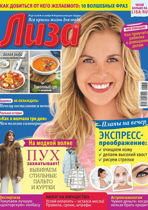 Самый популярный в России еженедельный журнал для молодых женщин «Лиза» стал еще интереснее, еще привлекательнее для читательниц. Теперь больше знаменитостей на страницах любимого журнала! Фитнес со звездой и звездный макияж, уроки стиля и самые горячие новости из жизни кумиров. А еще — модный шопинг, актуальная мода, новинки косметики и великолепные идеи для дома. Романтические истории о настоящей любви и рассказы читательниц о разных жизненных ситуациях. Аспекты психологии, секреты успешных отношений с окружающими и искусство сохранения любви.
