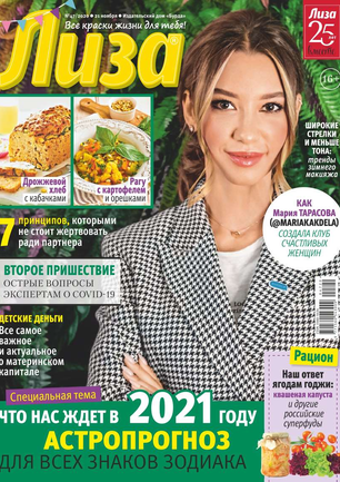 Самый популярный в России еженедельный журнал для молодых женщин «Лиза» стал еще интереснее, еще привлекательнее для читательниц. Теперь больше знаменитостей на страницах любимого журнала! Фитнес со звездой и звездный макияж, уроки стиля и самые горячие новости из жизни кумиров. А еще — модный шопинг, актуальная мода, новинки косметики и великолепные идеи для дома. Романтические истории о настоящей любви и рассказы читательниц о разных жизненных ситуациях. Аспекты психологии, секреты успешных отношений с окружающими и искусство сохранения любви.