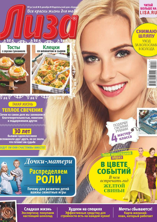 Самый популярный в России еженедельный журнал для молодых женщин «Лиза» стал еще интереснее, еще привлекательнее для читательниц. Теперь больше знаменитостей на страницах любимого журнала! Фитнес со звездой и звездный макияж, уроки стиля и самые горячие новости из жизни кумиров. А еще — модный шопинг, актуальная мода, новинки косметики и великолепные идеи для дома. Романтические истории о настоящей любви и рассказы читательниц о разных жизненных ситуациях. Аспекты психологии, секреты успешных отношений с окружающими и искусство сохранения любви.
