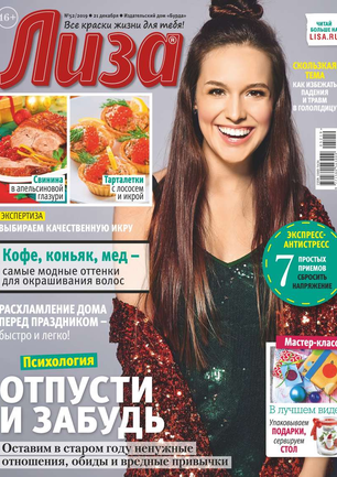 Самый популярный в России еженедельный журнал для молодых женщин «Лиза» стал еще интереснее, еще привлекательнее для читательниц. Теперь больше знаменитостей на страницах любимого журнала! Фитнес со звездой и звездный макияж, уроки стиля и самые горячие новости из жизни кумиров. А еще — модный шопинг, актуальная мода, новинки косметики и великолепные идеи для дома. Романтические истории о настоящей любви и рассказы читательниц о разных жизненных ситуациях. Аспекты психологии, секреты успешных отношений с окружающими и искусство сохранения любви.