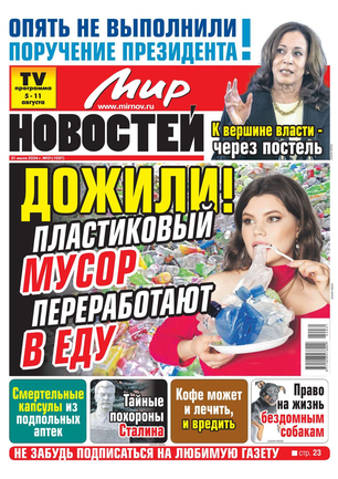В газете можно найти материалы практически на любую тему: о политике и экономике, о здоровье и садоводстве, о науке и о мире таинственного, непознанного. Советы врачей, психологов, экспертов по судебным делам, стилистов, косметологов, народных целителей - вот далеко не полный перечень того, что можно видеть на страницах "Мира новостей", тираж которого неизменно растет.
