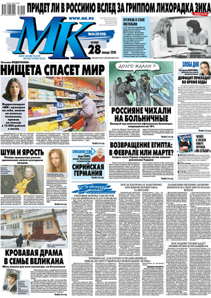 Московский комсомолец - популярная российская газета. Выходит во всех крупных городах России. Ежедневно обновляемые статьи, обзоры, комментарии. Собственная лента новостей. Выходит с 11 декабря 1919 г. Распространяется по всей России, в ближнем зарубежье, в Европе и Америке.Тематика: общественно-политическое издание, органично сочетающее острые социальные и политические материалы, экономические обзоры, городские новости, светскую хронику и развлекательную информацию.