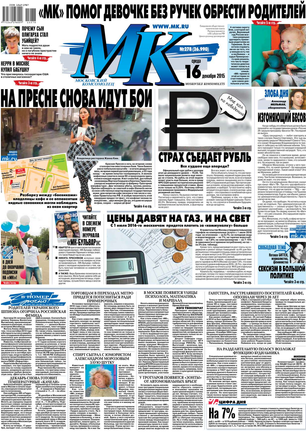 Московский комсомолец - популярная российская газета. Выходит во всех крупных городах России. Ежедневно обновляемые статьи, обзоры, комментарии. Собственная лента новостей. Выходит с 11 декабря 1919 г. Распространяется по всей России, в ближнем зарубежье, в Европе и Америке.