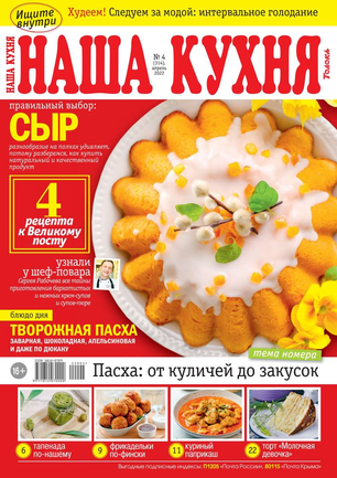 Основа каждого номера — проверенные рецепты блюд с фотографиями. С помощью «Нашей кухни» можно запросто составить меню на каждый день и для праздничного стола. С журналом «Наша кухня» процесс приготовления блюд превратится в удовольствие!