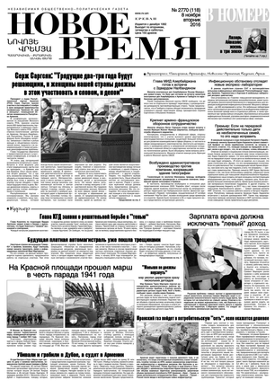 Общественно- политическая газета “Новое Время” была создана в 1992-м году и за 20 лет своего существования сумела заслужить среди армянских читателей право называться лучшей русскоязычной газетой в РА. Помимо сугубо политических тем издание обращается также к вопросам социальным, научным, культурным. Внимание уделяется и проблемам армянской диаспоры…