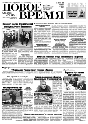 Общественно- политическая газета “Новое Время” была создана в 1992-м году и за 20 лет своего существования сумела заслужить среди армянских читателей право называться лучшей русскоязычной газетой в РА. Помимо сугубо политических тем издание обращается также к вопросам социальным, научным, культурным. Внимание уделяется и проблемам армянской диаспоры…
