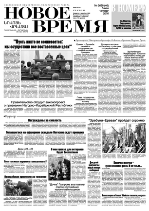 Общественно- политическая газета “Новое Время” была создана в 1992-м году и за 20 лет своего существования сумела заслужить среди армянских читателей право называться лучшей русскоязычной газетой в РА. Помимо сугубо политических тем издание обращается также к вопросам социальным, научным, культурным. Внимание уделяется и проблемам армянской диаспоры…