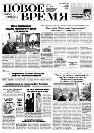 Общественно- политическая газета “Новое Время” была создана в 1992-м году и за 20 лет своего существования сумела заслужить среди армянских читателей право называться лучшей русскоязычной газетой в РА. Помимо сугубо политических тем издание обращается также к вопросам социальным, научным, культурным. Внимание уделяется и проблемам армянской диаспоры…