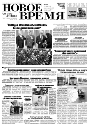 Общественно- политическая газета “Новое Время” была создана в 1992-м году и за 20 лет своего существования сумела заслужить среди армянских читателей право называться лучшей русскоязычной газетой в РА. Помимо сугубо политических тем издание обращается также к вопросам социальным, научным, культурным. Внимание уделяется и проблемам армянской диаспоры…