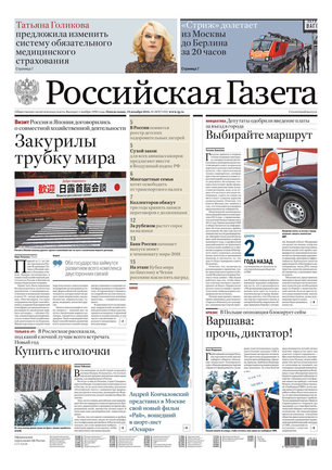 Это объективная, оперативная, качественная информация. Газета исповедует принцип: "Сведения из первых рук". В ней нет места домыслам - это журналистика факта. Подписавшись на "Российскую газету", вы получаете уникальную возможность задать любой волнующий вас вопрос представителям региональной и федеральной власти и получить ответ по существу. После публикации в газете вступают в силу федеральные законы, указы и распоряжения Президента России. Подписавшись на "Российскую газету", вы сможете получить полное представление обо всех важнейших событиях в России и мире, а сверх того много полезной информации, помогающей жить и добиваться успеха.
