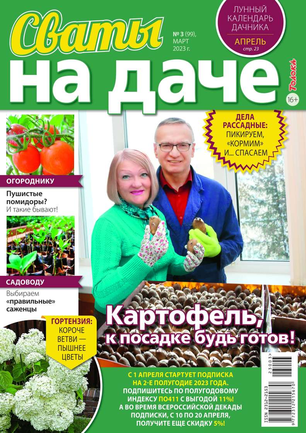 В журнале «Сваты на даче» вы узнаете, как проще, быстрее и без неимоверных усилий добиться высоких урожаев и обустроить дачный быт. В одном журнале 300 подсказок: самые действенные и доступные методы посева и посадки садово-огородных культур, ухода за ними, борьбы с вредителями и болезнями.
