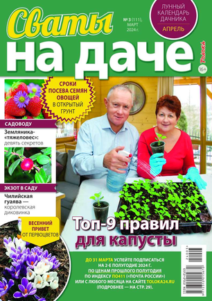 В журнале «Сваты на даче» вы узнаете, как проще, быстрее и без неимоверных усилий добиться высоких урожаев и обустроить дачный быт. В одном журнале 300 подсказок: самые действенные и доступные методы посева и посадки садово-огородных культур, ухода за ними, борьбы с вредителями и болезнями.