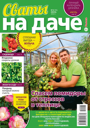 В журнале «Сваты на даче» вы узнаете, как проще, быстрее и без неимоверных усилий добиться высоких урожаев и обустроить дачный быт. В одном журнале 300 подсказок: самые действенные и доступные методы посева и посадки садово-огородных культур, ухода за ними, борьбы с вредителями и болезнями.