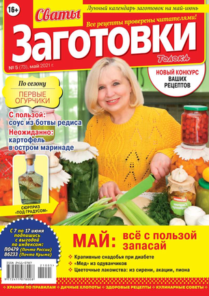 Более 100 рецептов заготовок от Сватов в каждом номере: соленья и маринады, салаты и ассорти, соусы и приправы, заготовки к сезону, сладкие заготовки, напитки, винный погребок, мясные деликатесы, здоровые рецепты, целебные заготовки, дачные хлопоты, правила хранения, а также кроссворды и сканворды для досуга. Лучшими рецептами поделятся с вами сваты Любовь Сергеевна и Михаил Михайлович.