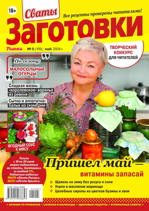 Более 100 рецептов заготовок от Сватов в каждом номере: соленья и маринады, салаты и ассорти, соусы и приправы, заготовки к сезону, сладкие заготовки, напитки, винный погребок, мясные деликатесы, здоровые рецепты, целебные заготовки, дачные хлопоты, правила хранения, а также кроссворды и сканворды для досуга. Лучшими рецептами поделятся с вами сваты Любовь Сергеевна и Михаил Михайлович.