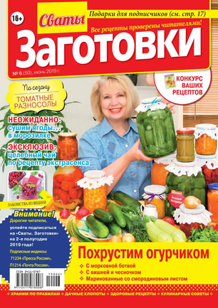 Более 100 рецептов заготовок от Сватов в каждом номере: соленья и маринады, салаты и ассорти, соусы и приправы, заготовки к сезону, сладкие заготовки, напитки, винный погребок, мясные деликатесы, здоровые рецепты, целебные заготовки, дачные хлопоты, правила хранения, а также кроссворды и сканворды для досуга. Лучшими рецептами поделятся с вами сваты Любовь Сергеевна и Михаил Михайлович.