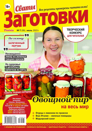 Более 100 рецептов заготовок от Сватов в каждом номере: соленья и маринады, салаты и ассорти, соусы и приправы, заготовки к сезону, сладкие заготовки, напитки, винный погребок, мясные деликатесы, здоровые рецепты, целебные заготовки, дачные хлопоты, правила хранения, а также кроссворды и сканворды для досуга. Лучшими рецептами поделятся с вами сваты Любовь Сергеевна и Михаил Михайлович.