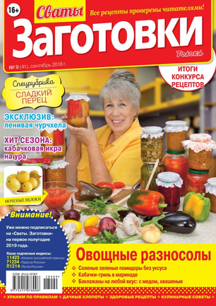 Более 100 рецептов заготовок от Сватов в каждом номере: соленья и маринады, салаты и ассорти, соусы и приправы, заготовки к сезону, сладкие заготовки, напитки, винный погребок, мясные деликатесы, здоровые рецепты, целебные заготовки, дачные хлопоты, правила хранения, а также кроссворды и сканворды для досуга. Лучшими рецептами поделятся с вами сваты Любовь Сергеевна и Михаил Михайлович.