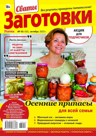 Более 100 рецептов заготовок от Сватов в каждом номере: соленья и маринады, салаты и ассорти, соусы и приправы, заготовки к сезону, сладкие заготовки, напитки, винный погребок, мясные деликатесы, здоровые рецепты, целебные заготовки, дачные хлопоты, правила хранения, а также кроссворды и сканворды для досуга. Лучшими рецептами поделятся с вами сваты Любовь Сергеевна и Михаил Михайлович.