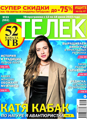 Еженедельник «ТЕЛЕК» является доброй семейной газетой, увлекательным рассказчиком и хорошо информированным советчиком. С ней всегда можно провести время интересно и с пользой.Подробный телегид позволяет читателям хорошо ориентироваться в мире телекино и телепрограмм.
