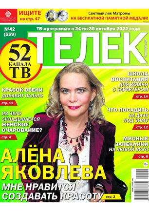 Еженедельник «ТЕЛЕК» является доброй семейной газетой, увлекательным рассказчиком и хорошо информированным советчиком. С ней всегда можно провести время интересно и с пользой.Подробный телегид позволяет читателям хорошо ориентироваться в мире телекино и телепрограмм.