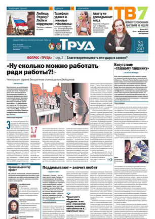 Одна из старейших общественно-политических газет (издается с февраля 1921 года). Корреспонденты «Труда» ежедневно рассказывают читателям о политике, культуре, спорте, экономике, жизни общества, самых интересных новостях дня и многом другом. Издание рассчитано на широкий круг читателей.