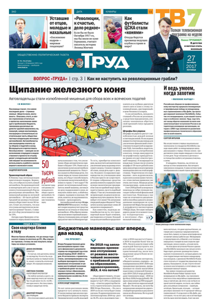 Одна из старейших общественно-политических газет (издается с февраля 1921 года). Корреспонденты «Труда» ежедневно рассказывают читателям о политике, культуре, спорте, экономике, жизни общества, самых интересных новостях дня и многом другом. Издание рассчитано на широкий круг читателей.