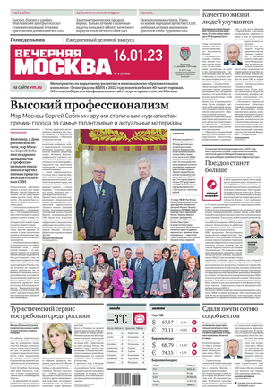 «Вечерняя Москва» — ежедневная российская вечерняя газета, старейшее из вечерних изданий в России, учрежденное в 1923 году. Выходит пять дней в неделю, кроме субботы и воскресенья. Отличается тем, что рассказывает о событиях еще не завершившегося дня. Оперативно освещает хронику и особенности жизни Москвы, охватывает все слои общества и большинство профессиональных и возрастных групп читателей.Издание представлено тремя выпусками – утренним ежедневным, вечерним (выходит три раза в неделю), еженедельным (выходит по четвергам).